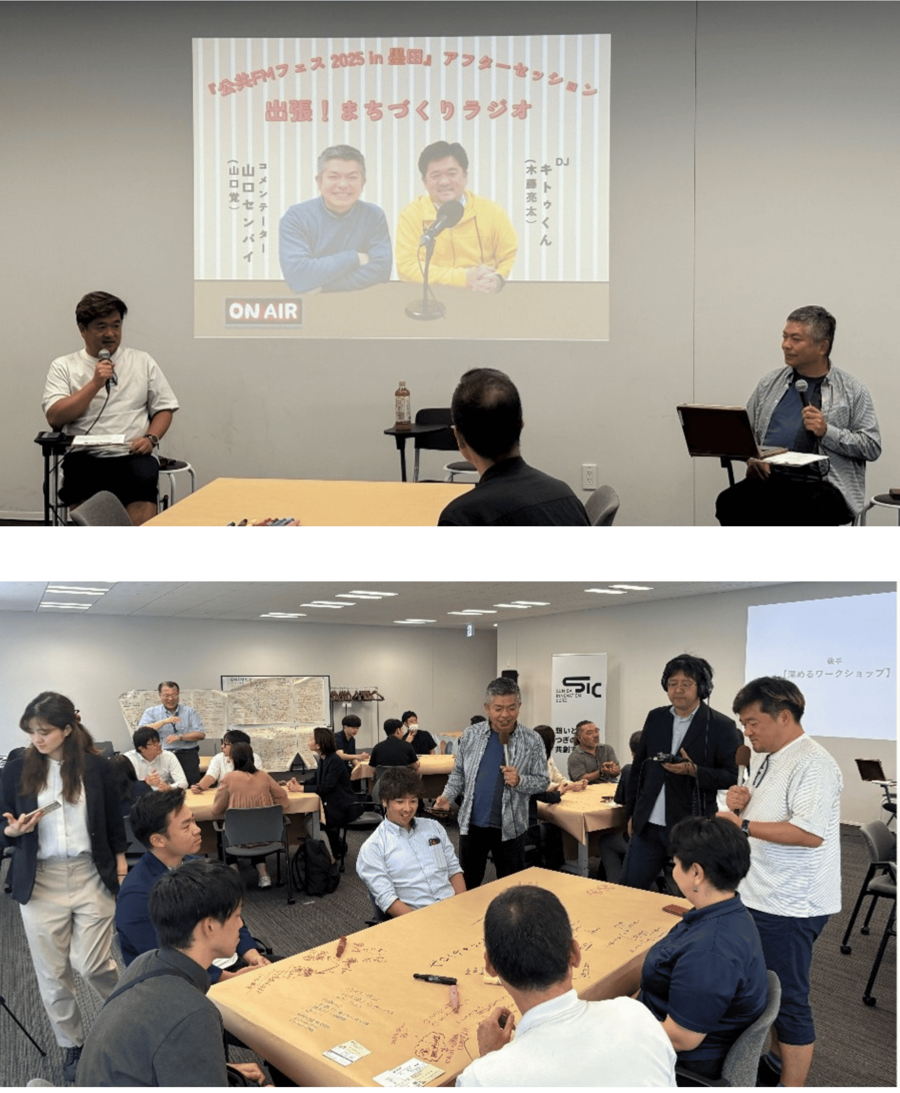 30日のアフターセッションでは、全国のまちや地域活動に関わる方をご紹介するラジオ番組『キトゥくんと山口センパイの まちづくりラジオ』の木藤様・山口様にお越しいただき、墨田区都市整備部浮貝様との対談やワークショップを行いました。