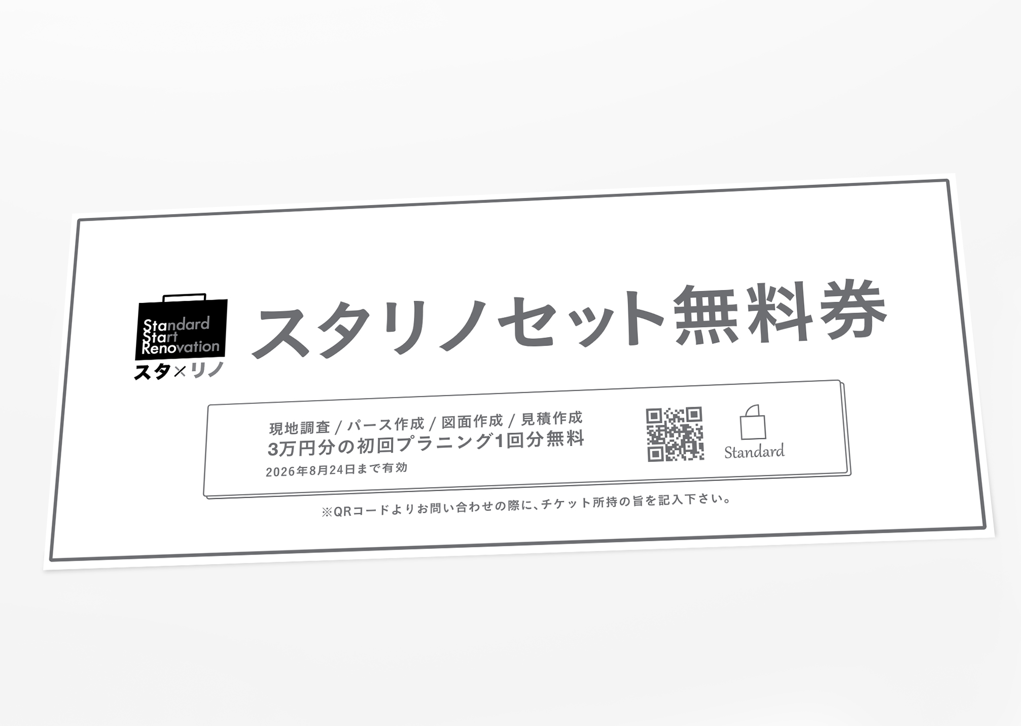 通常3万円頂いておりますリノベーションプランニング料金が無料になる、リノベーションをお考えの方にはとてもお得なチケットです。