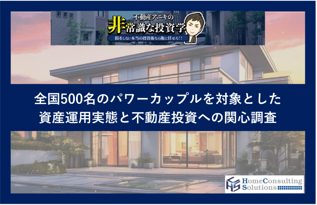 不動産経営のコンサルティングを展開するホームコンサルティングソリューションズ株式会社(愛知県名古屋市、代表・小林大祐)は、資産運用を行っている全国のパワーカップル(夫婦それぞれが年収700万円以上、世帯年収1400万円以上)500名を対象に、「パワーカップルの資産運用実態と不動産投資への関心調査」を実施しました。