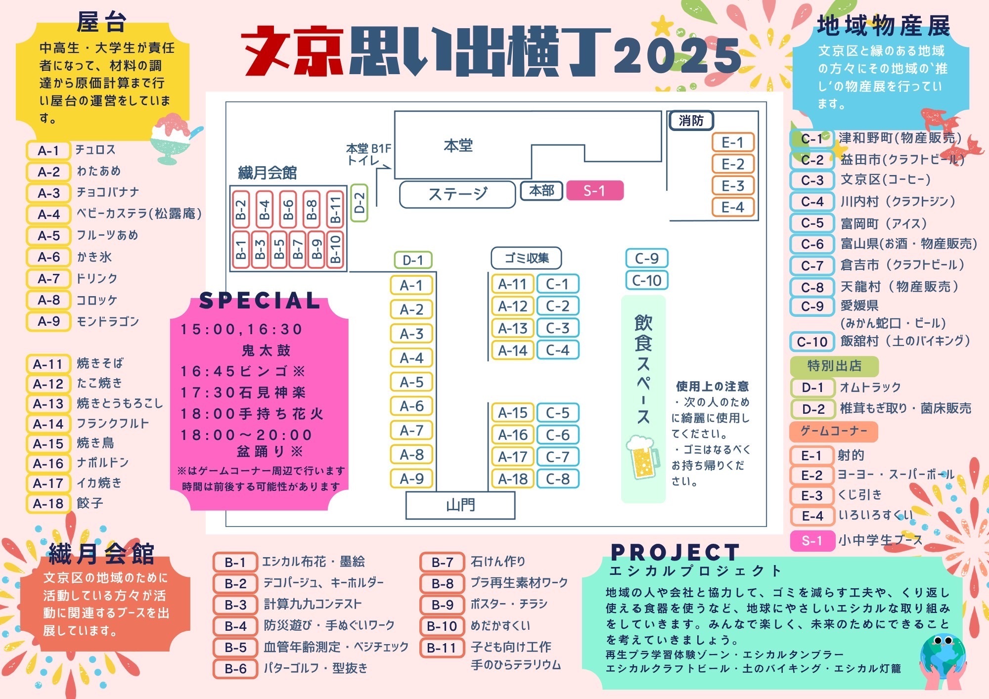 今年の「文京思い出横丁」は、祭りで出る大量のごみ問題に向き合う「エシカル推進プロジェクト」を新たに始動。企業や地域と協力しながら、環境に配慮した取り組みに挑戦いたします。