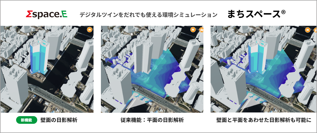 応用技術株式会社(本社:大阪市北区、代表取締役社長:船橋 俊郎、以下 「応用技術」))は、国土交通省のPLATEAUデータを活用したデジタルツインをだれもが使える環境シミュレーション「まちスペース®」に、新機能「壁面日影解析」を追加しました。これにより、Webブラウザ上で建物の壁面に生じる日影の状態を手軽に可視化することが可能となり、不動産開発や物件購入を検討する一般消費者まで、幅広いユーザーの課題解決を支援します。
