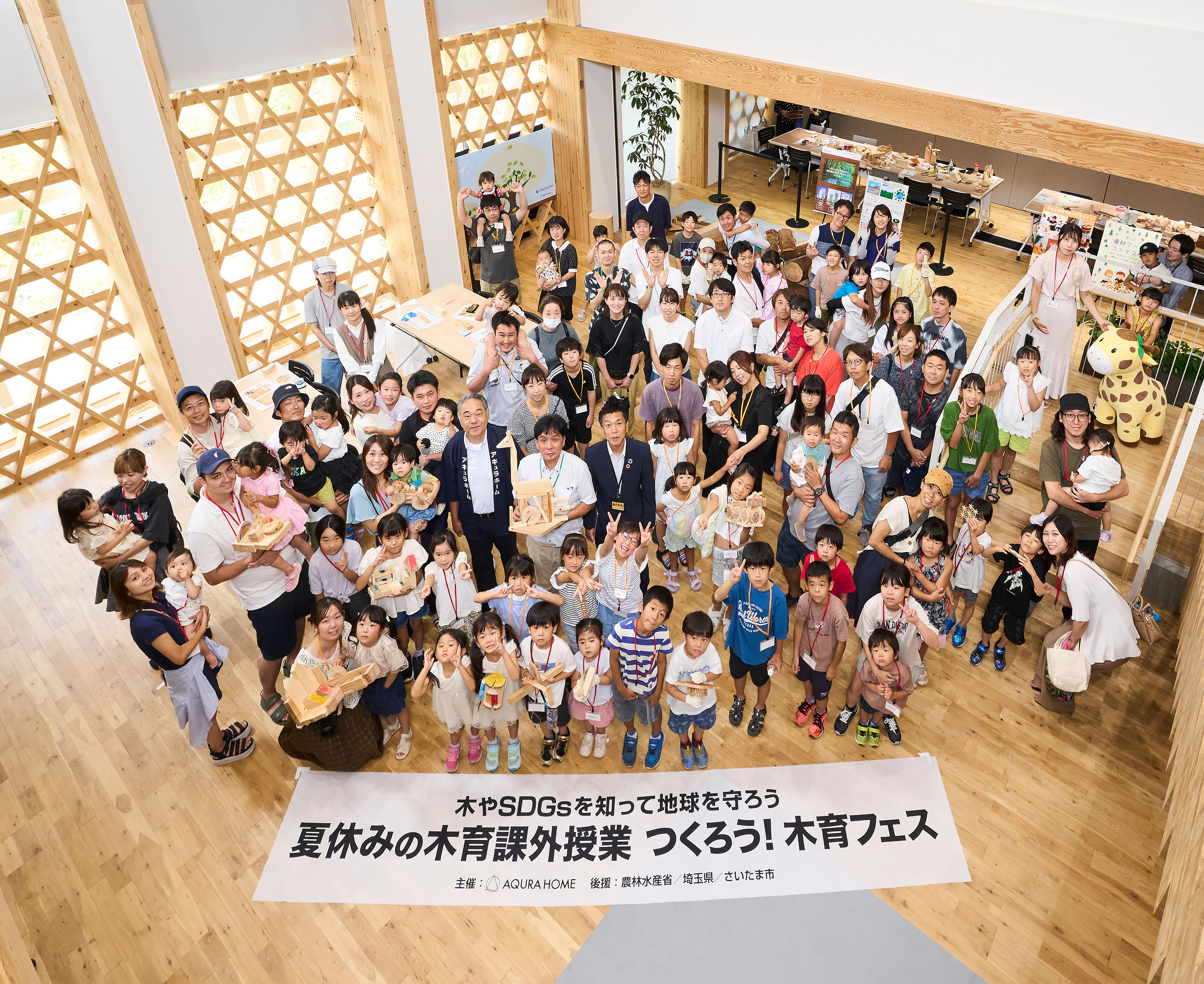 弊社の企業思想が色濃く反映された同イベントは、国や行政からも高い評価を得ており、農林水産省は第1回からすべての「木育フェス」に後援いただいています。2回目以降はAQ Group本社所在地である埼玉県とさいたま市からも、また3回目となる今年は農林水産省、埼玉県、さいたま市に加え、奈良県や広島県教育委員会、群馬県教育委員会など、全国各地の行政や民間企業からも後援いただいています。