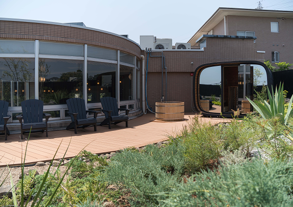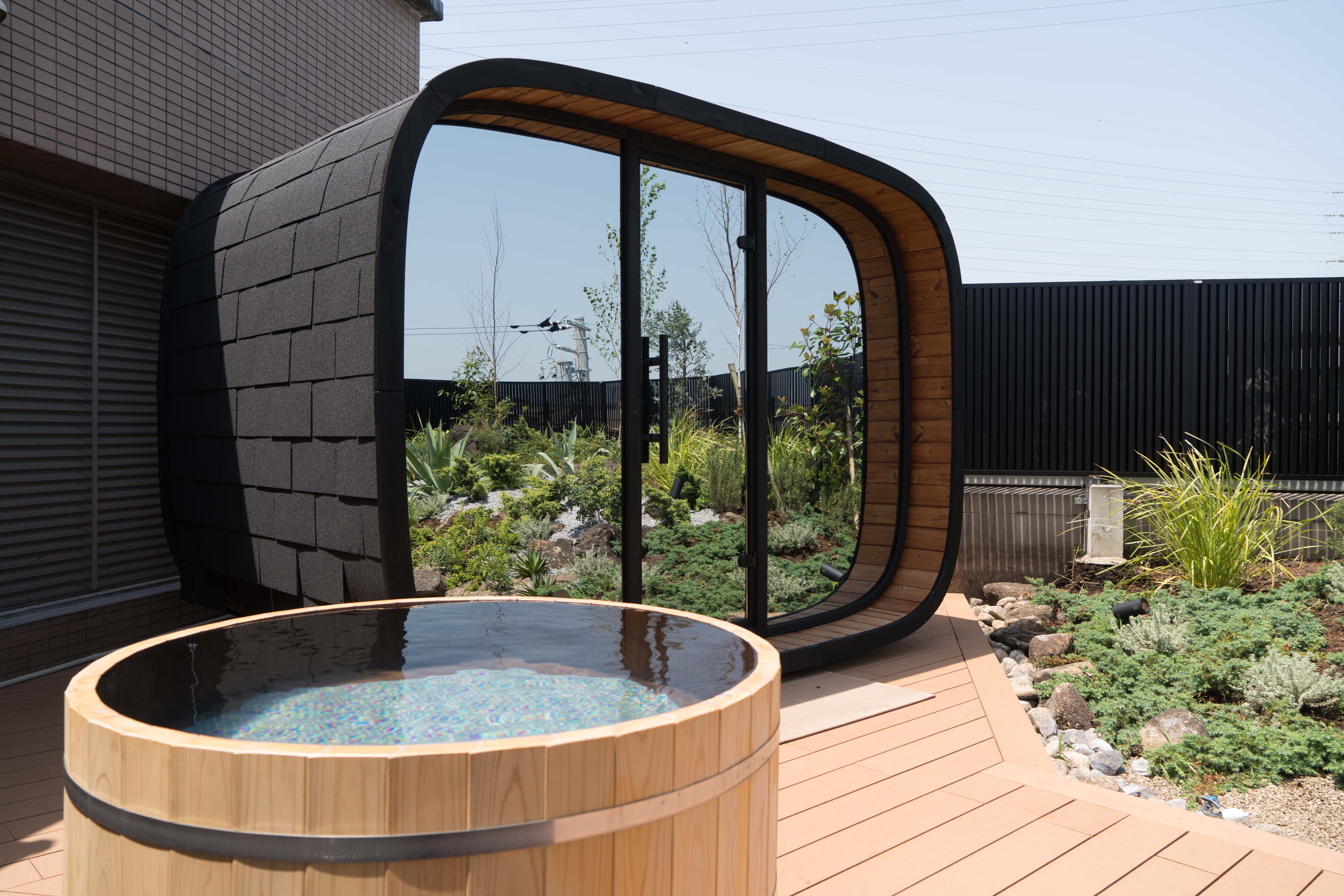 ■屋上デッキで開放的な本格的なアウトドアサウナと水風呂を無料体験