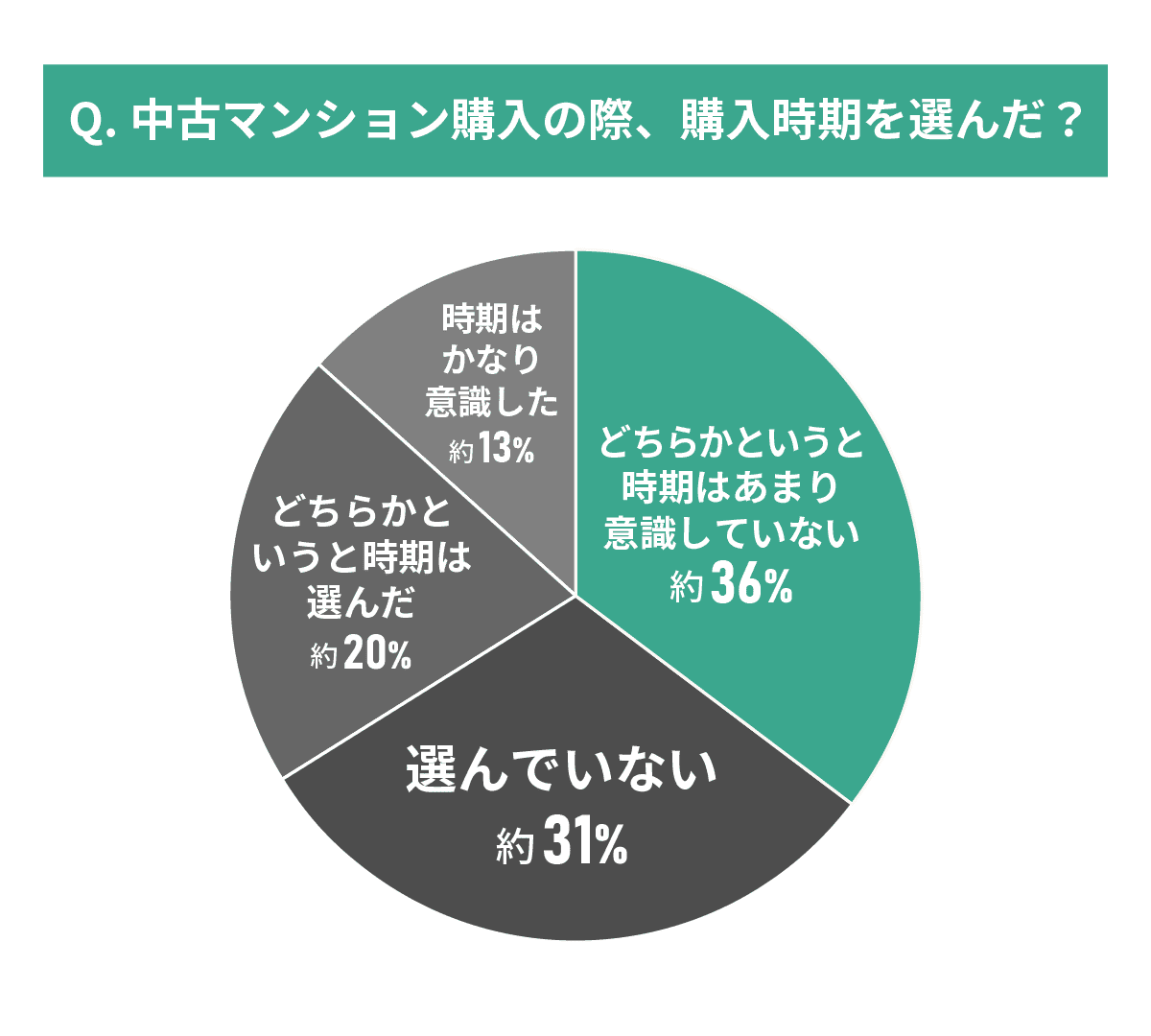 時期を意識しなかった回答者の多くは、物件の条件や魅力を最優先に考えています。中古マンションは新築と異なり、同じ条件の物件が複数出ることは稀なため、良い物件に出会ったタイミングを逃さないことを重視する傾向が見られます。