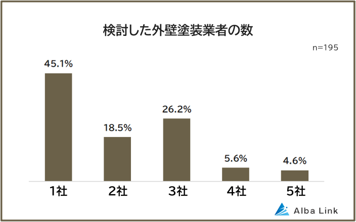 今回、株式会社AlbaLink( https://albalink.co.jp/)が運営する訳あり物件買取ナビ( https://albalink.co.jp/realestate/)は、外壁塗装を業者に依頼したことがある195人を対象に「外壁塗装の業者選び」についてアンケート調査を実施しました。