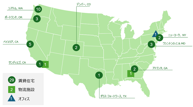 本物件はシアトル国際空港至近のビュリエン市に所在し、空港周辺やケントバレーといった就業地域、さらにシアトル及びベルビュー等の都心部への交通利便性が高く、近隣や都心部に勤務するDINKS層及びファミリー層の底堅い賃貸需要を見込んでおります。