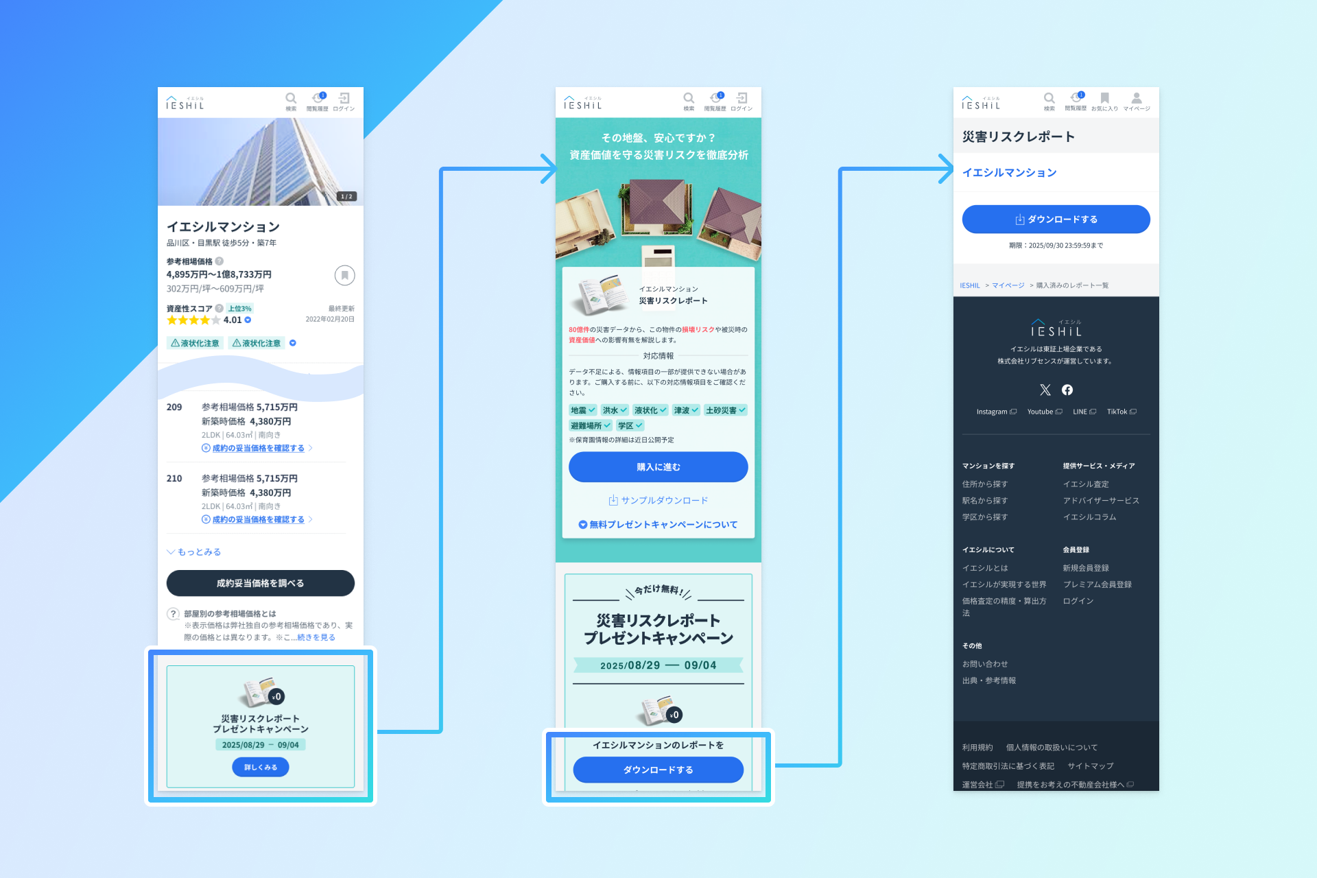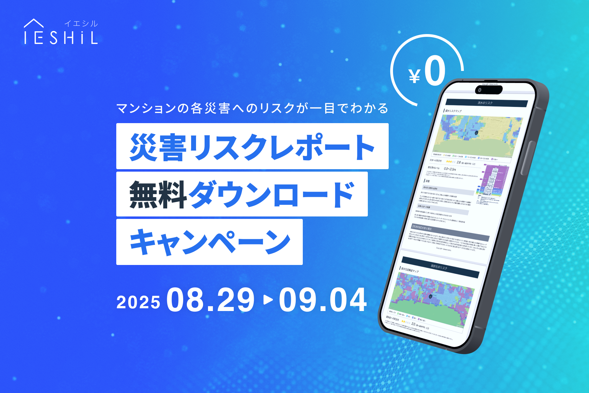 株式会社リブセンス(本社:東京都港区、代表取締役社長:村上太一、証券コード:6054)が運営する不動産情報サイト『IESHIL(イエシル)』(https://www.ieshil.com/)は、2025年9月1日の「防災の日」にあわせ、2025年8月29日(金)〜9月4日(木)の期間限定で、一都三県のマンション周辺の災害リスクがわかる「災害リスクレポート」を、通常770円のところ、無料で提供いたします。