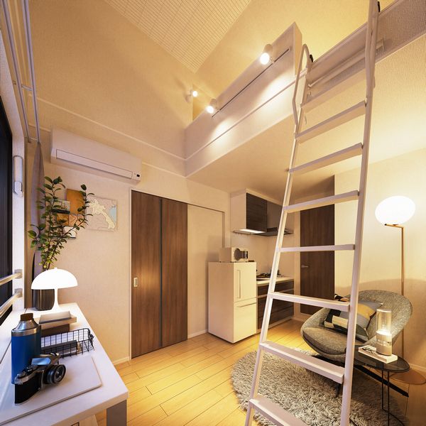 1階は、洗面一体型のサニタリーキッチンとシャワーユニットを採用し、コンパクトながら機能的に水回りを配置した14.58㎡、2階は3.9帖のロフトを設け空間を有効活用した20.15㎡+ロフトとなっています。どちらも広さを抑えることにより、好立地でも若年層が無理なく暮らせる家賃水準となるよう工夫しています。
