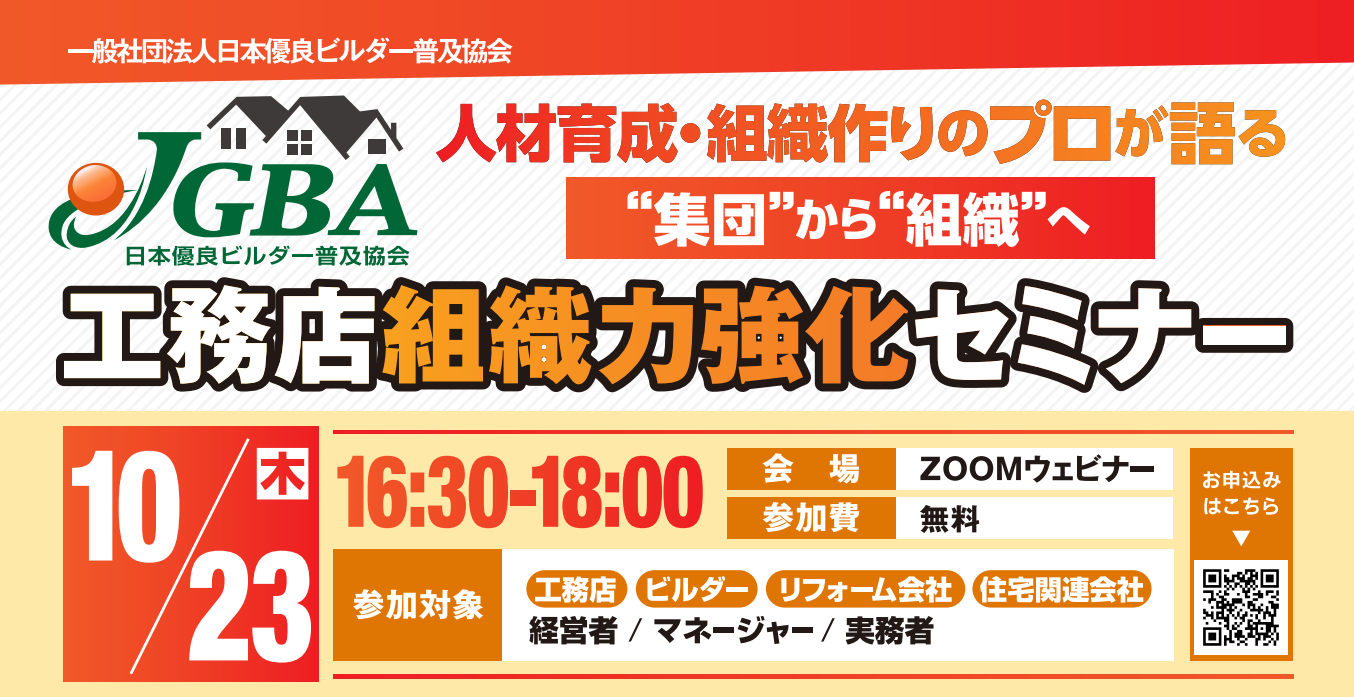 イベント名:JGBA『人材育成・組織作りのプロが語る集団から組織へ「工務店組織力強化セミナー」』