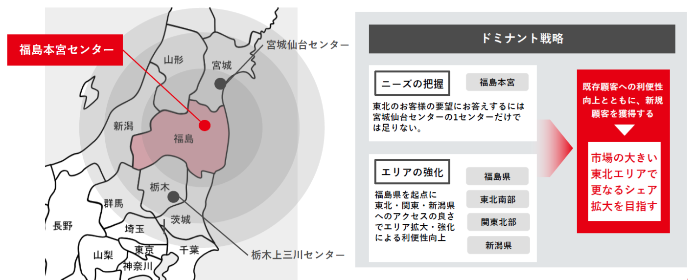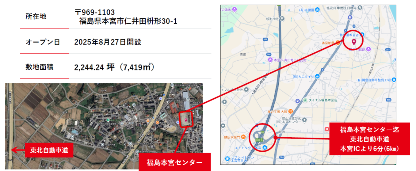 当社は、こうした市場環境の変化やお客様のニーズに対応するため、毎年全国各地で新たな拠点の開設を進めてまいりました。このたび開設する福島本宮センターにより、東北エリアでのサービス提供体制をさらに強化し、より多くのお客様にとって「近くで、安心して」ご利用いただける環境を整備してまいります。