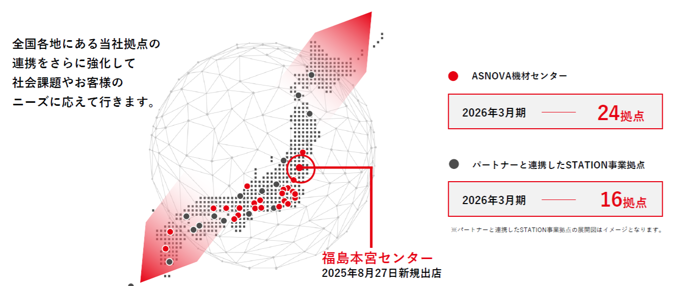 くさび式足場のレンタル・販売を提供する株式会社 ASNOVA(本社所在地:愛知県名古屋市、代表取締役社長 上田桂司、以下「当社」)は、2025年8月27日(水)福島県本宮市に新たに直営機材センターを出店いたしました。