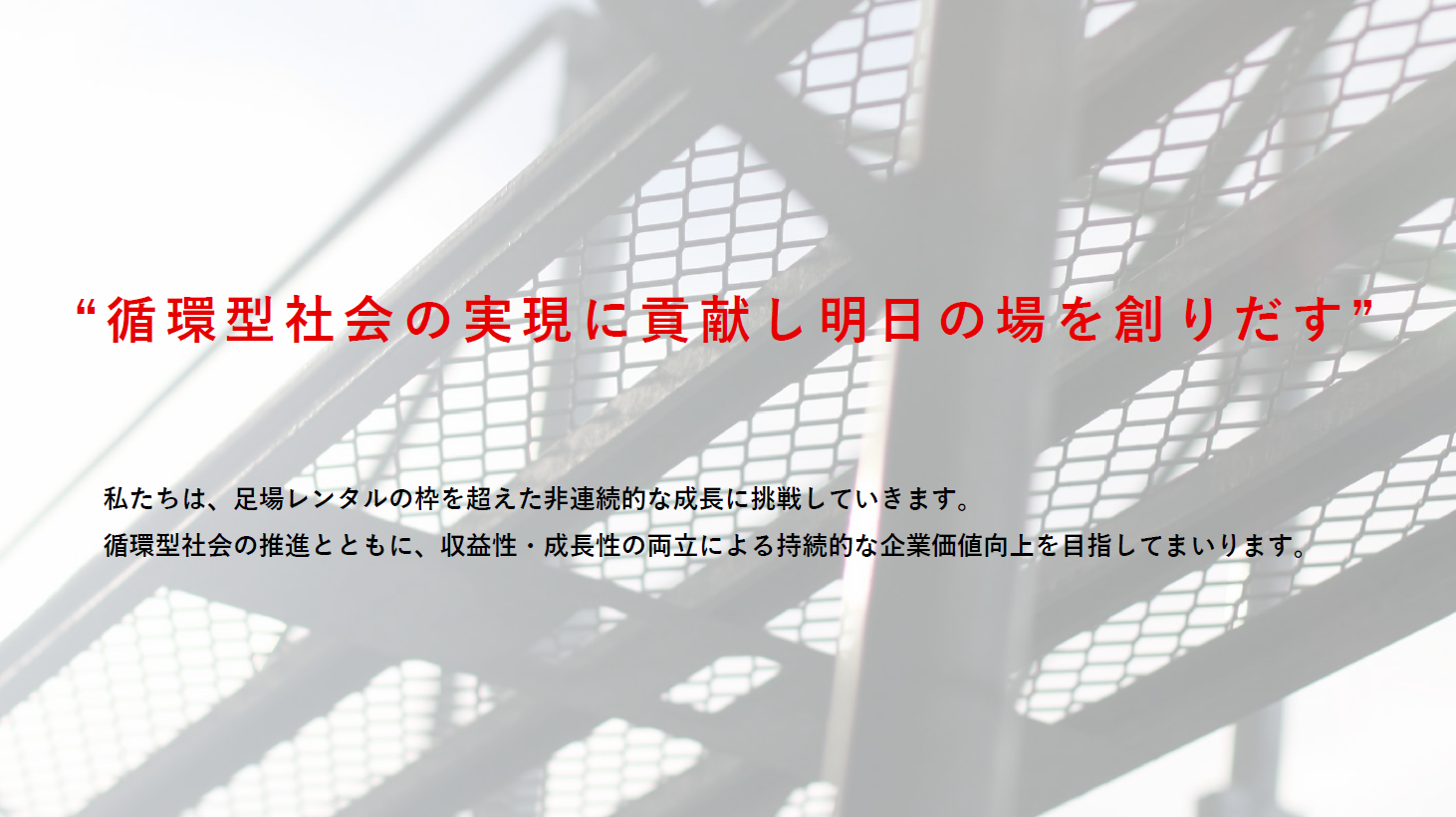 当社は、「いつでも」「近くで」「安心して」足場をレンタルいただける環境の整備に取り組んでまいりました。今後は、直営の機材センターとパートナー拠点との連携をさらに強化し、全国各地で足場機材を必要とされるお客様のニーズに的確にお応えするとともに、業界を取り巻く社会課題の解決にも積極的に取り組んでまいります。