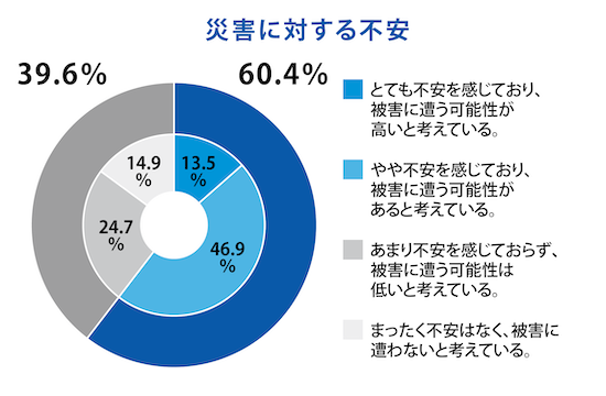 「とても」「やや」を合算すると、60.4%の方が災害に不安を感じています。