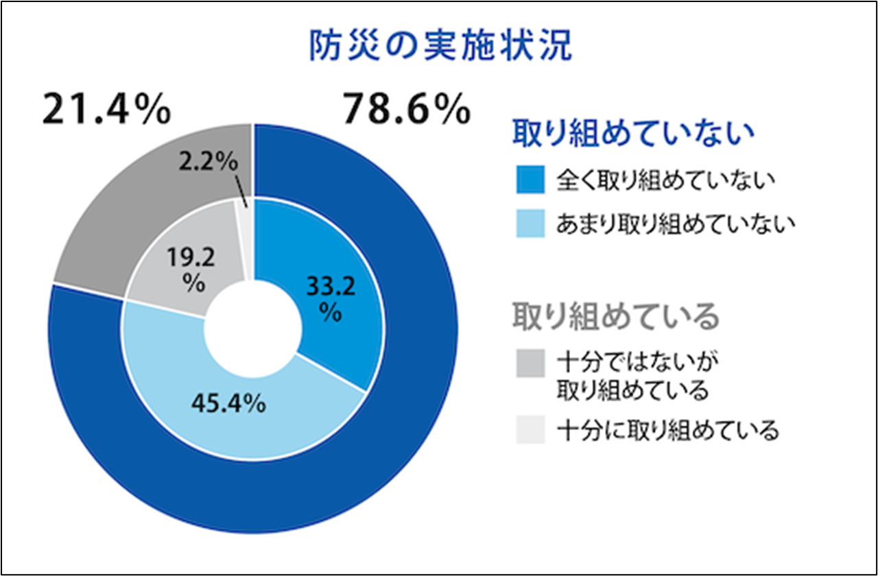 「全く」「あまり」を合わせ「取り組めていない」と回答した方が78.6%となり、全体的に防災の取り組みが進んでいない結果となりました。