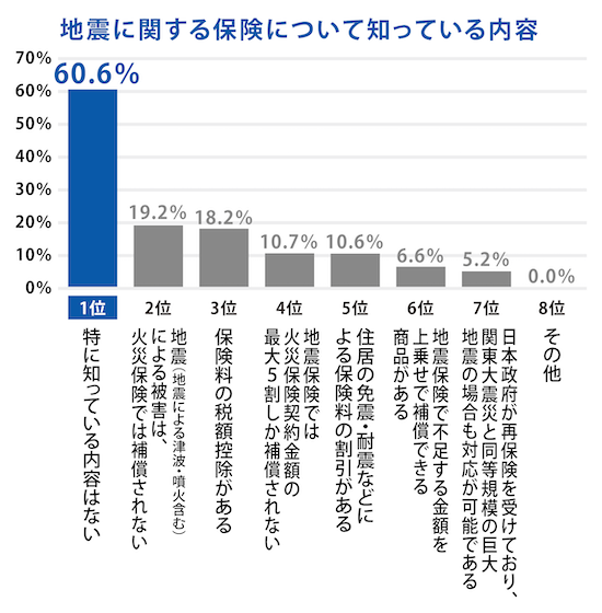 「特に知っている内容はない」が60.6%を占めており、引き続き保険会社による地震保険に関する情報の周知が必要であることが分かります。