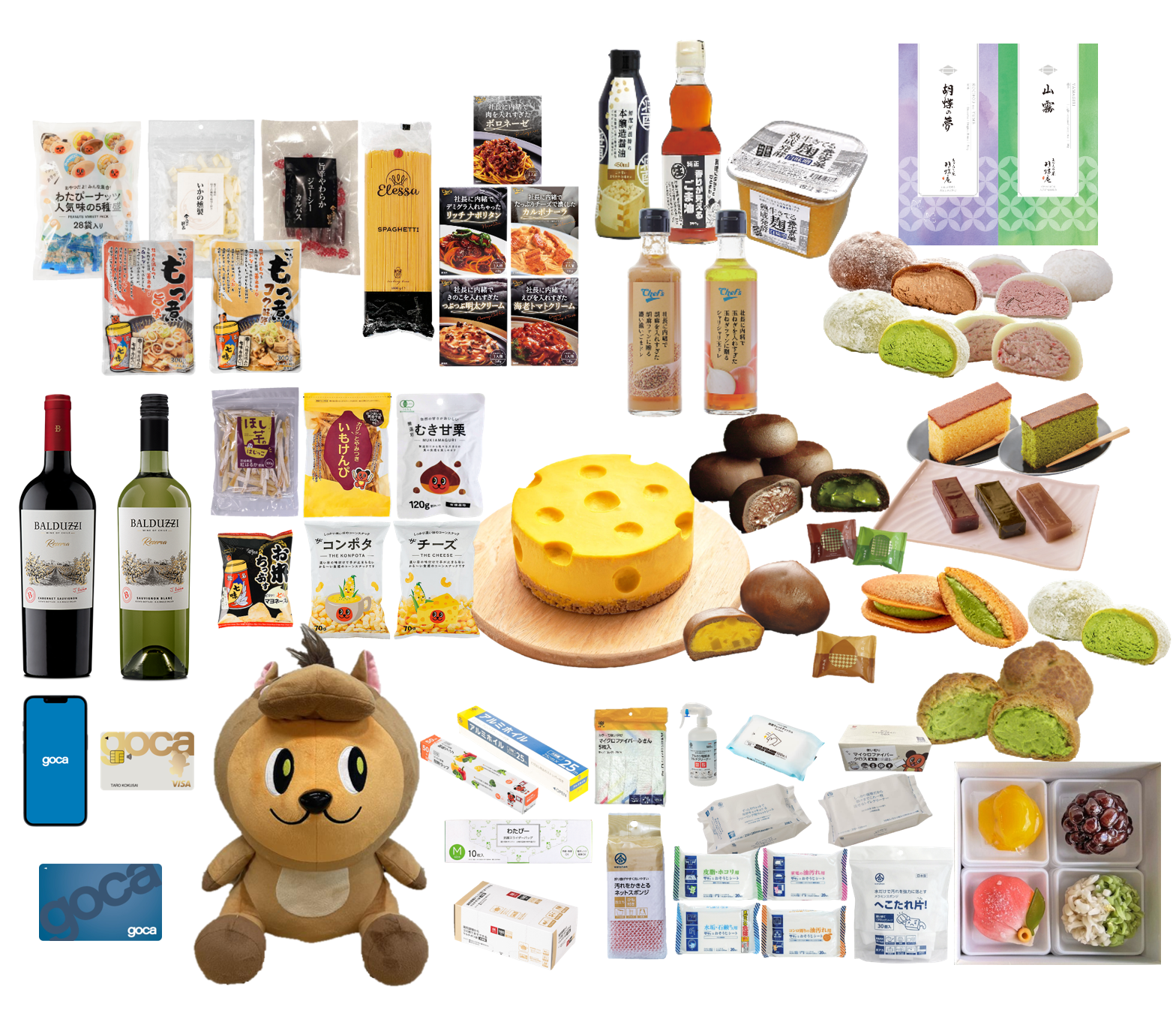 新たに、あづみの茶胡蝶庵より「生チョコまんじゅう&ほっ栗まんじゅうセット」「抹茶づくしセット」「ようかん&カステラセット」、綿半オリジナル商品を詰合せた「パスタセット」「おつまみセット」「キッチンセット」、そして「gocaポイント」を追加いたしました!!