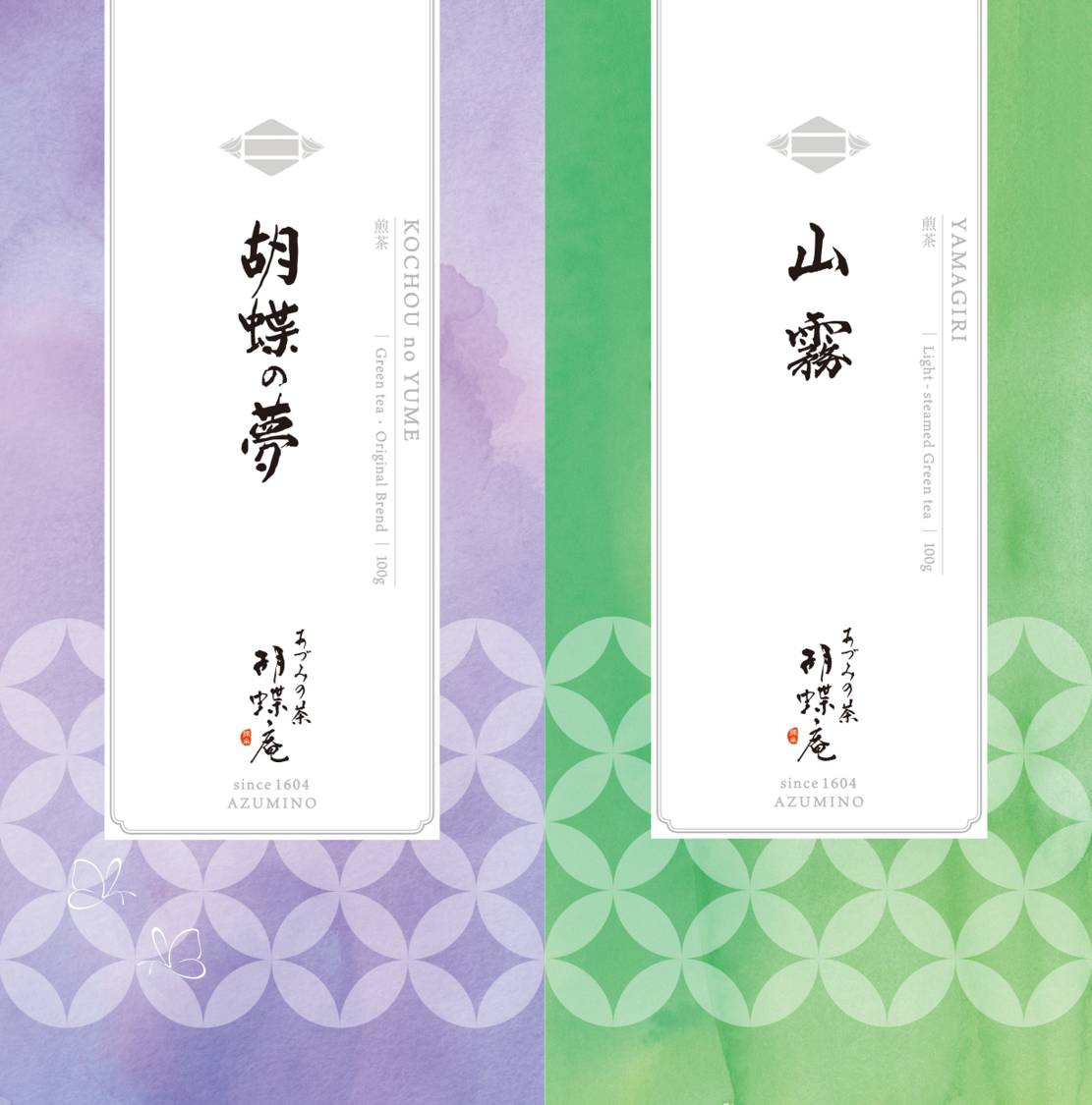…初代三原次郎の俳号「胡蝶」より名が付けられた代表茶。高知県四万十川上流「津野山郷」産を主原料に九州産のやぶきた茶をブレンドした飲みやすい伝統茶。