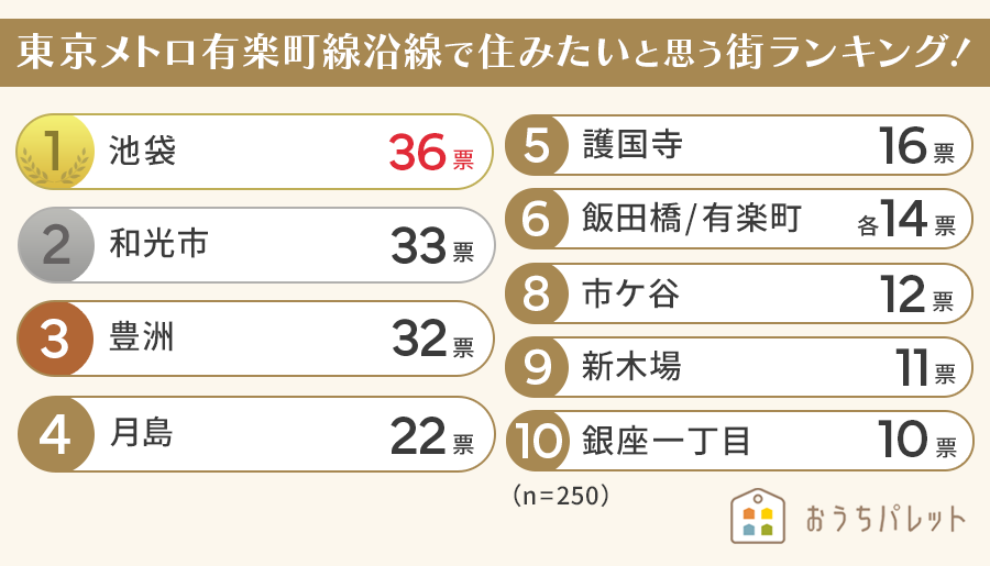 おうちパレット・男性が選ぶ東京メトロ有楽町線の住みたい街に関する調査