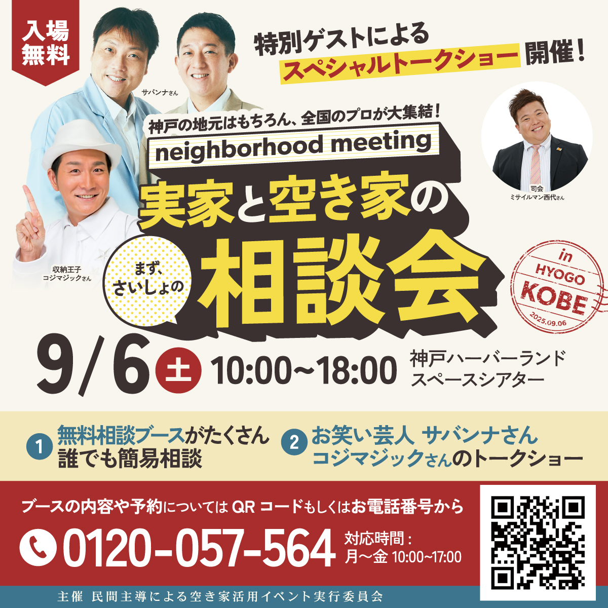 神戸市役所と、神戸市と協定を結ぶ4社の民間企業が実行委員会として主催する 「実家と空き家の相談会 in KOBE」を9月6日(土)に開催します。