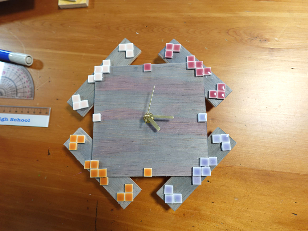 本取り組みは、昨年に続き2回目の開催となります。今回は、同じ墨田区の企業であり、日本最古の靴クリームメーカーである谷口化学工業所様の協力を得て、DIY用塗料をご寄付いただきました。子供たちは様々な色を木材に塗り、思い思いのデザインで時計を制作。素材や色彩の選択を通じて、一人ひとりの個性と創造力を発揮しました。