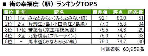 ■街の幸福度(駅)トップは、5年連続でみなとみらい