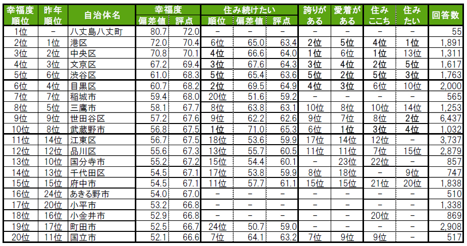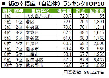 ■街の幸福度(自治体)トップは、初登場の八丈島八丈町