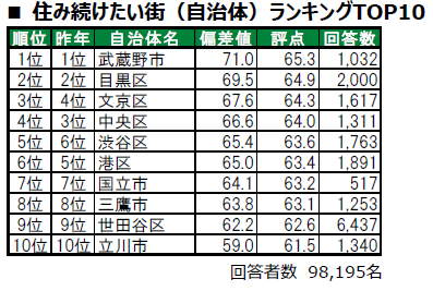 ■住み続けたい街(自治体)トップは、3年連続で武蔵野市