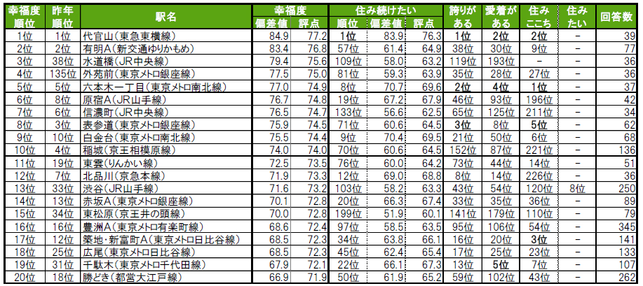 街の幸福度(駅)ランキング2025 TOP20
