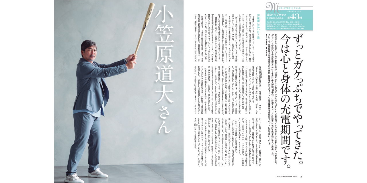 49回目を迎える本号の巻頭特集では、プロ野球界を代表する強打者であり「ガッツ」の愛称で親しまれた元プロ野球選手・小笠原道大氏にお話を伺いました。小笠原氏は、日本ハムファイターズ、読売ジャイアンツ、中日ドラゴンズで活躍し、プロ野球史にその名を残した強打者です。引退後は野球解説や指導者として活躍する一方、身体障害者野球のサポートに取り組み、社会貢献活動を続けています。今回のインタビューでは「挑戦する人生」「道を切り拓く力」について熱く語っていただきました。