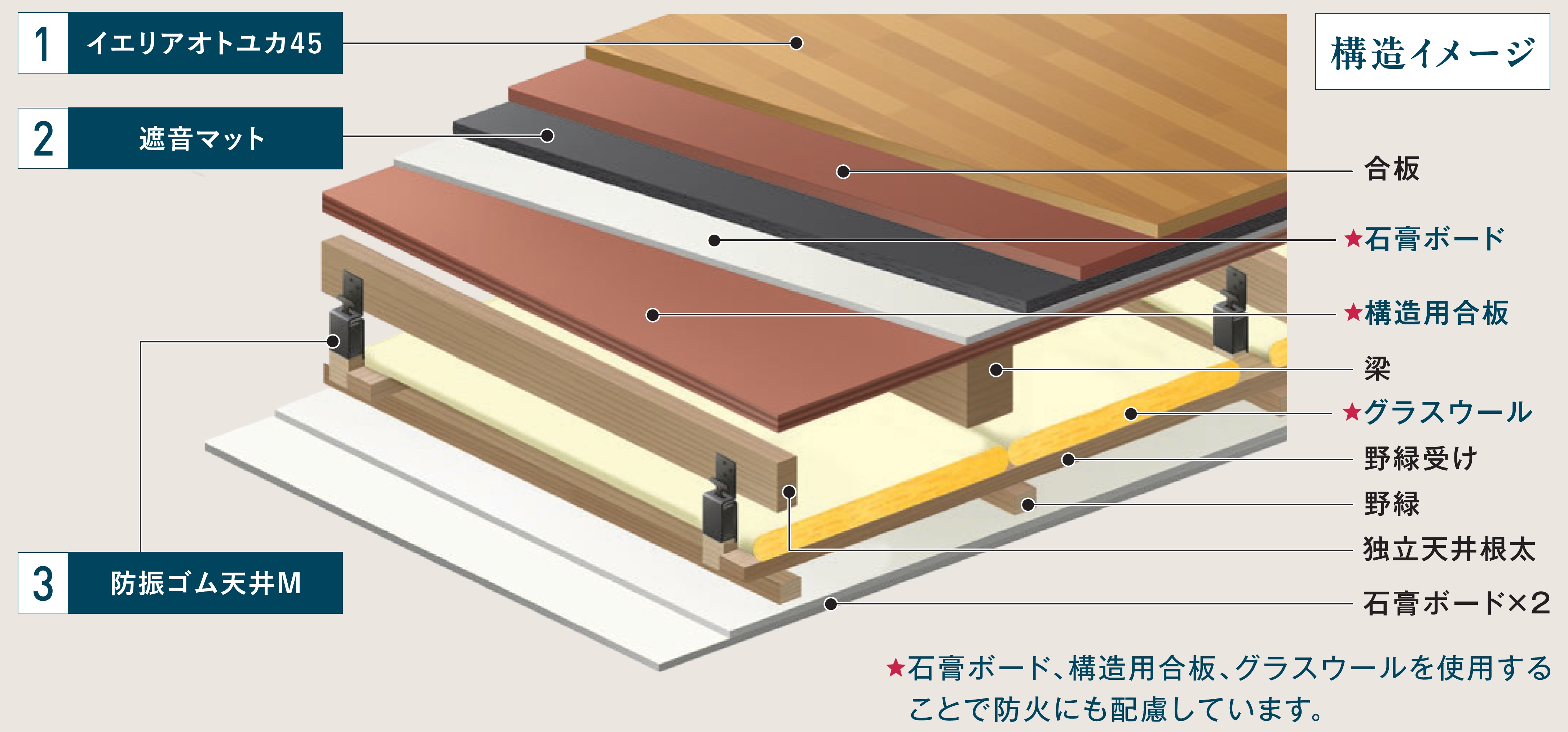 ※1:『防振ゴム天井M』は、ご提案プランによって使用の有無が変わります。詳細は次頁に掲載。