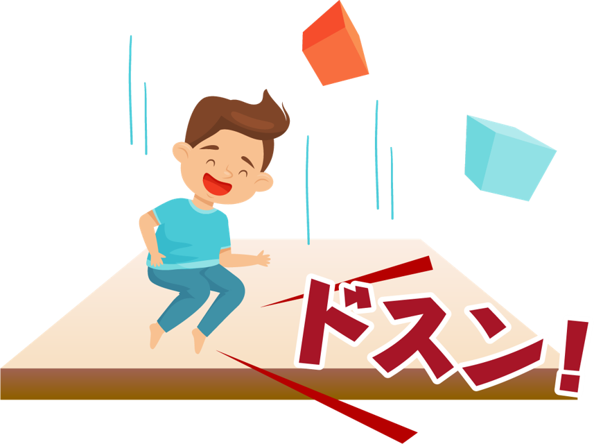 重量床衝撃音:子どもが机から飛び降りた音など、重くて鈍い音