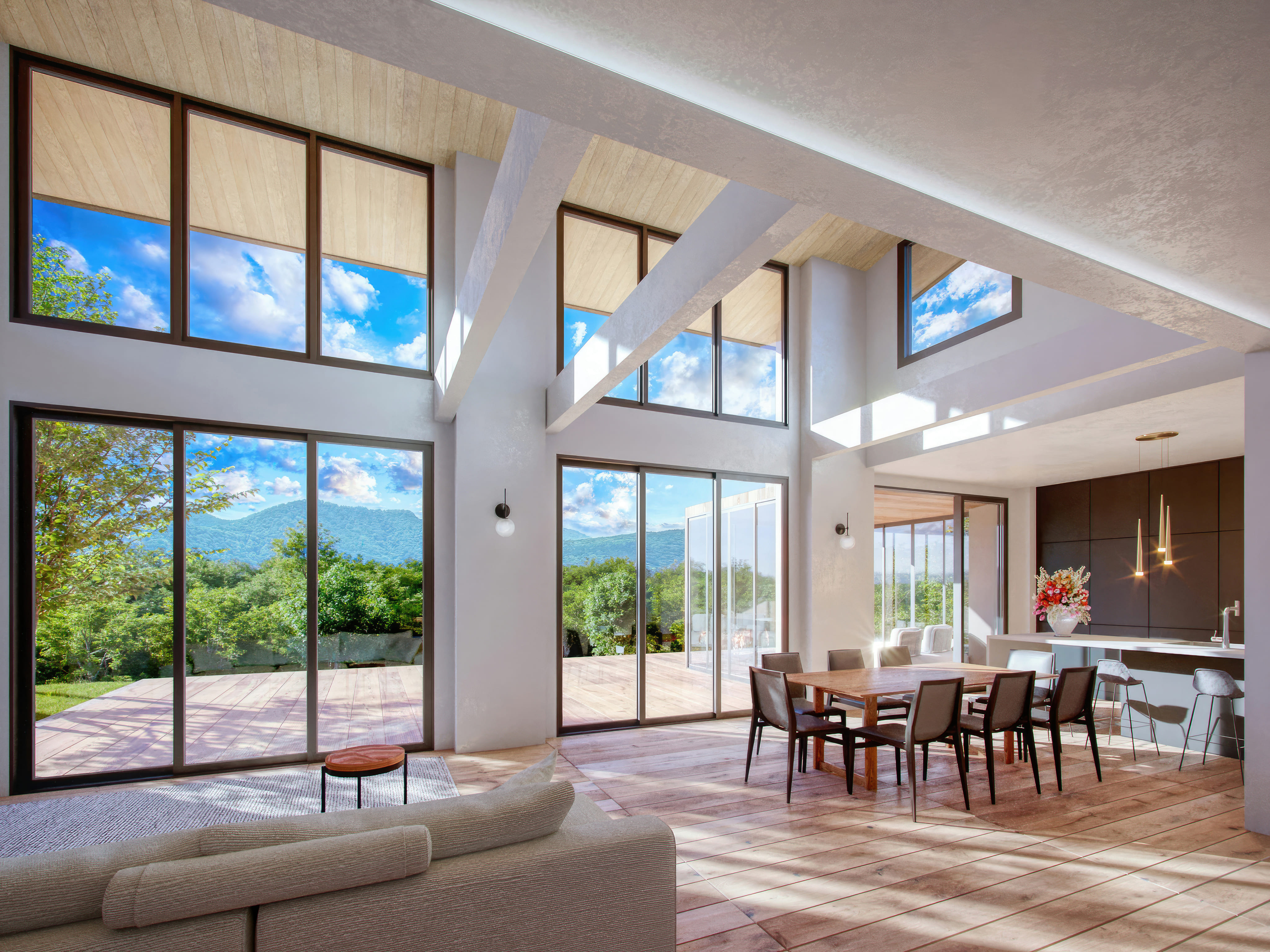 本プロジェクトは、那須高原の豊かな自然と調和した建築デザインとモダンな内装が特徴です。