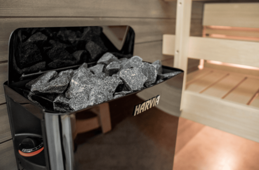 採用しているのは、”フィンランド発の老舗ブランドHarvia(ハルビア)”の電気サウナヒーター。コンパクトな設計でありながら、体を芯から温めるしっかりとした熱量と蒸気、そしてロウリュ(水蒸気)によるリラックス効果も楽しめる本格派です。