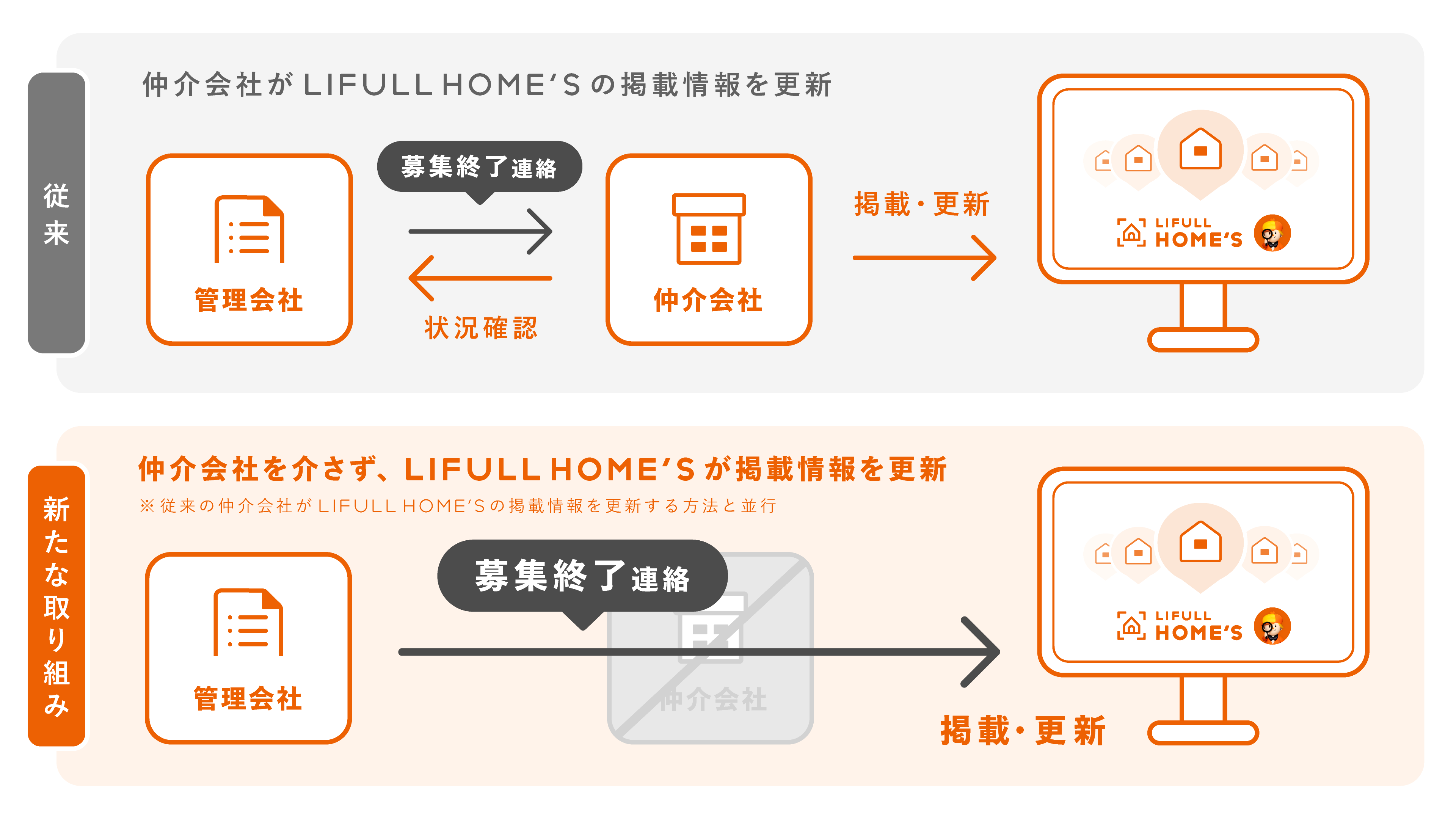 今回、新たにレオパレス21が参画することで、同社が管理している募集終了となった物件情報をLIFULL HOME’Sにて検知し、契約済み物件が掲載され続けないよう自動で非掲載処理を行います。これにより利用者はこれまで以上に最新かつ正確な物件情報を基に住まい探しを進めることが可能となります。
