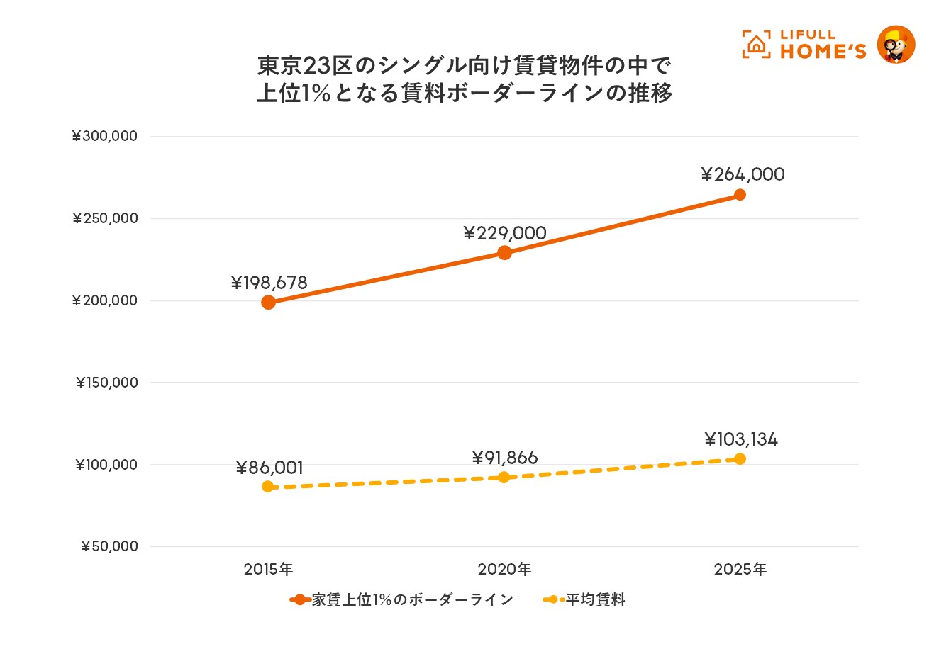 東京23区の賃料上位1%のボーダーラインが年々上昇