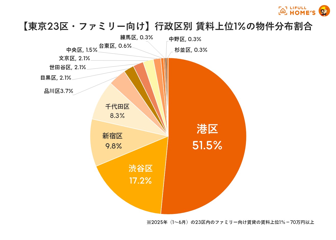 ファミリー向け物件の賃料上位1%の平均賃料は23区全体の平均賃料の約5.8倍