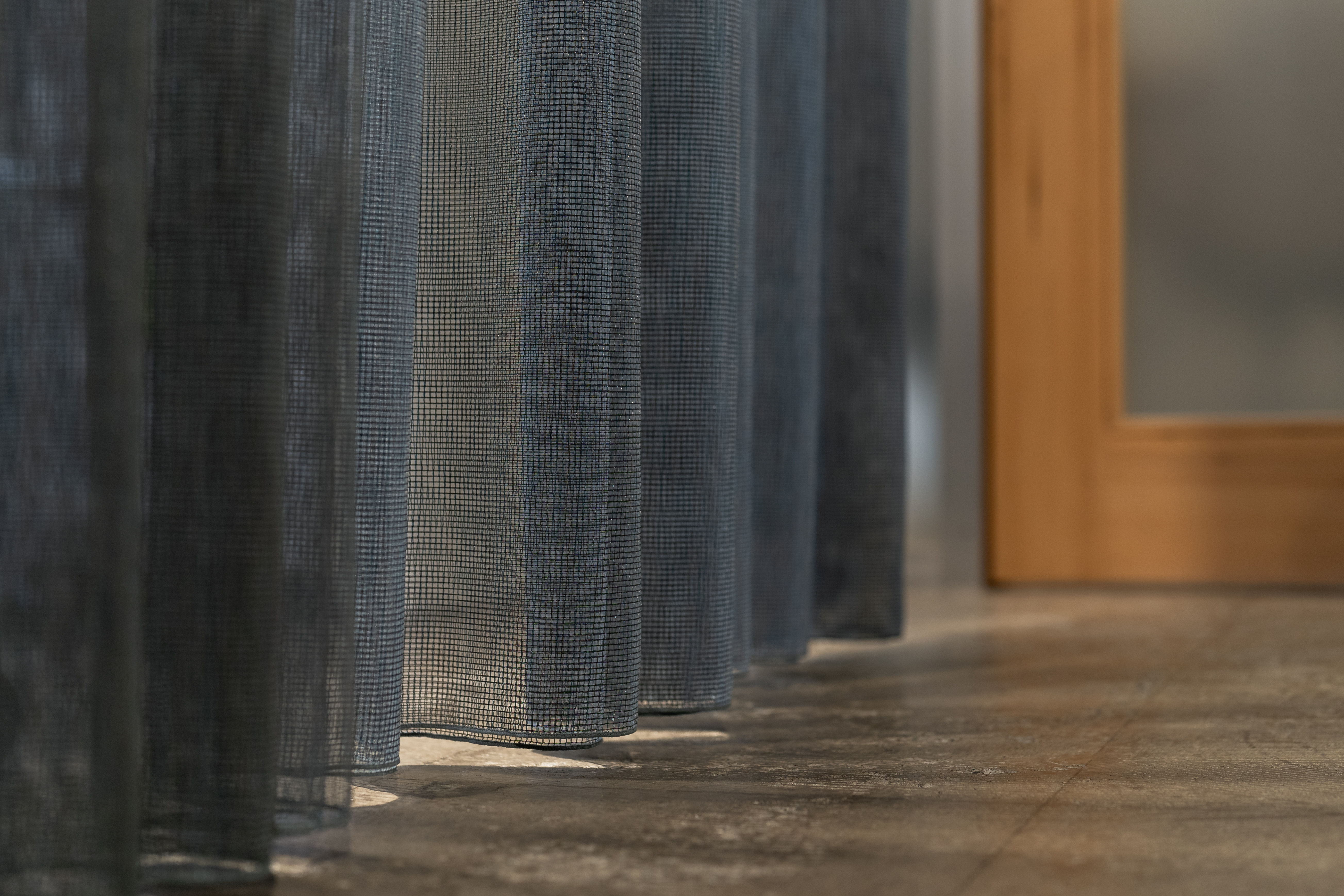 ■ Curtain|「unito」ロゴカラーであるindigo darkに染めた生地を使用