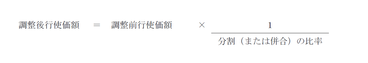 なお、付与株式数は、本新株予約権の割当日後、当社が株式分割(当社普通株式の無償割当てを含む。以下同じ。)または株式併合を行う場合、次の算式により調整されるものとする。但し、かかる調整は、本新株予約権のうち、当該時点で行使されていない本新株予約権の目的である株式の数についてのみ行われ、調整の結果生じる1株未満の端数については、これを切り捨てるものとする。