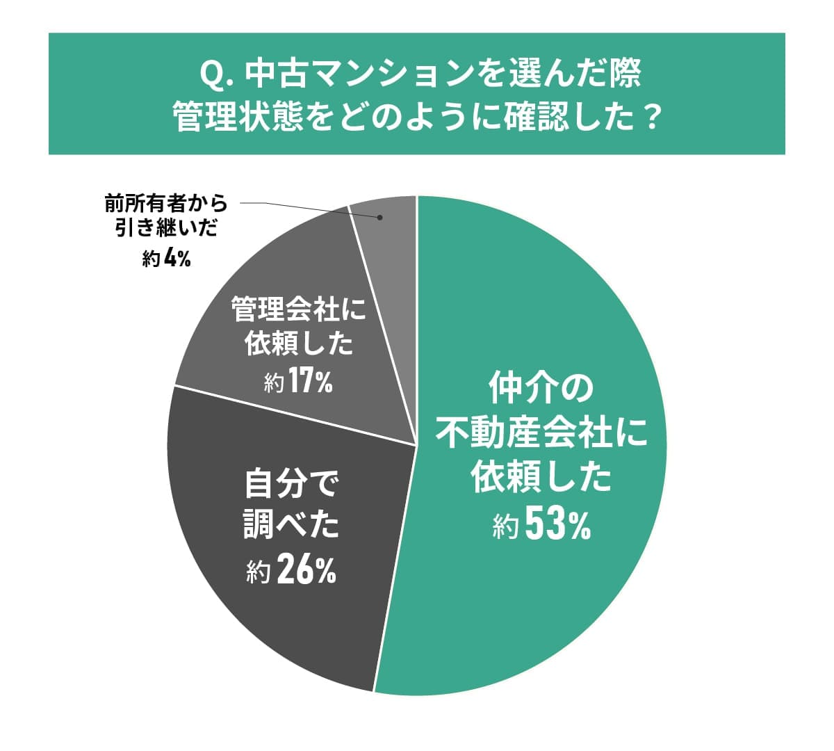約4分の1の購入者が自分で調べています。「実際に物件を見学した際に、管理組合の情報をもらったり、管理費や修繕積立金の額、過去の修繕履歴を確認したりした」「現地に行って確認した」といったコメントが示すように、より直接的で詳細な情報収集を行う意識の高い購入者層です。