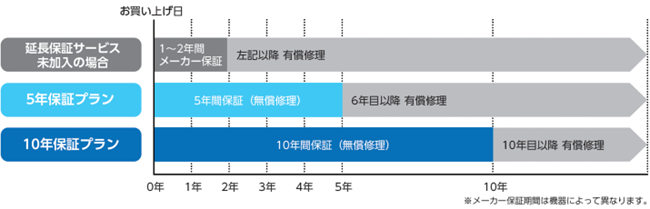 保証期間 : お買い上げ日(※1)から5年、10年(メーカー保証期間含む)