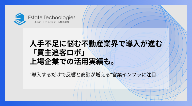 エステートテクノロジーズ株式会社(本社:東京都渋谷区、代表取締役:澤 博史)は、不動産会社が保有する顧客リストに対して物件情報を自動で配信し、閲覧・反応のログを可視化することで営業活動の効率化を支援する「買主追客ロボ」を提供しています。
