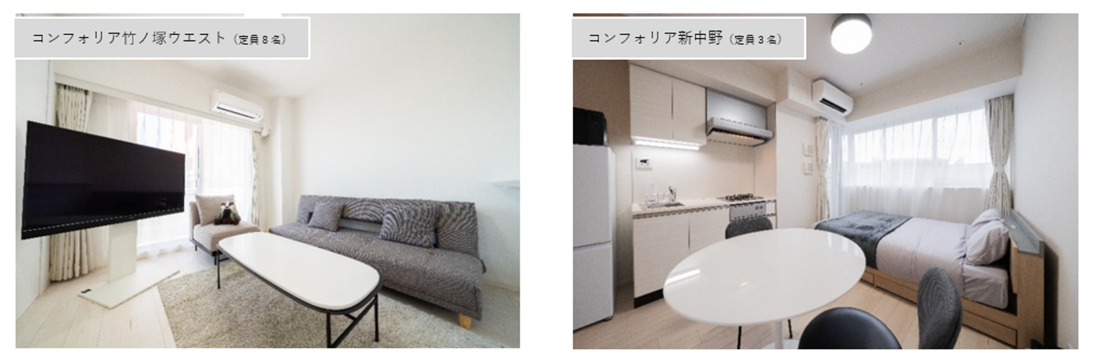 〇コンフォリア竹ノ塚ウエスト(8人収容)1部屋〇コンフォリア新中野(3人収容)3部屋〇コンフォリア・リヴ新板橋(6人収容)2部屋2025年12月頃にコンフォリア・リヴ大阪本町(2人/3人収容)をラインアップ追加予定。対象のラインナップは順次拡大・更新致します。 |