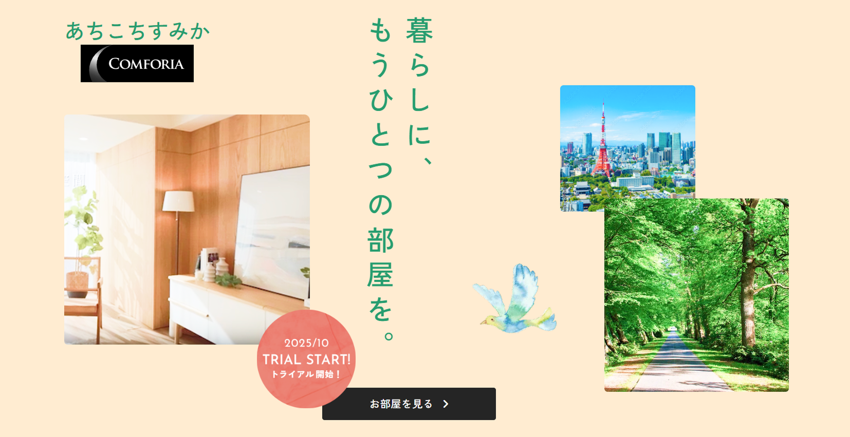 こうした状況のなか、安全性や快適性に配慮した賃貸マンションの空室区画を活用し、リーズナブルな価格で多拠点を行き来できる「あちこちすみか by COMFORIA」は、時代の課題に寄り添いながら、新しい価値を提供する住まいのサービスです。「コンフォリア」は居住者の「すみかの選択肢」や「暮らしの可能性」を広げることを目指し、今後も変化する社会のニーズを的確に捉え、住まいを通じて一歩先の価値を創造することで一人ひとりの豊かな暮らしを支える存在となることを目指します。