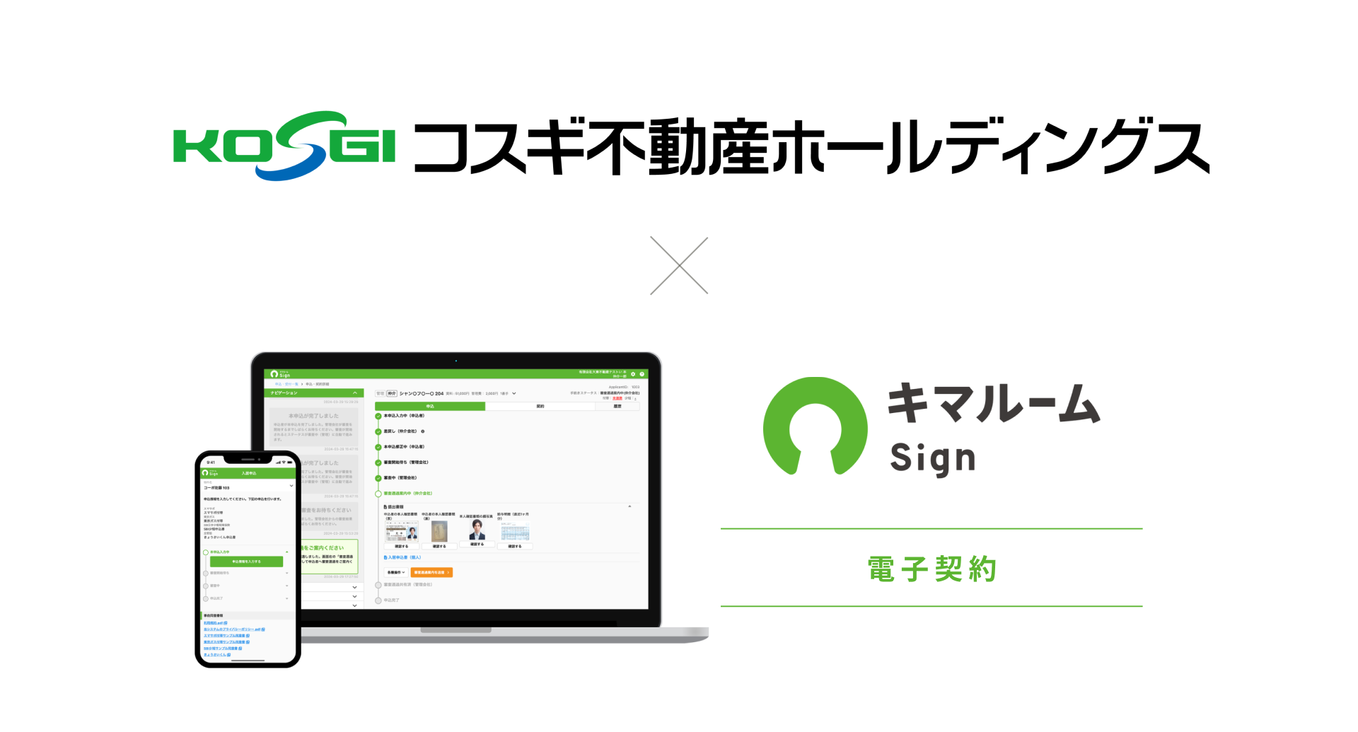 株式会社キマルーム(本社:東京都千代田区、代表取締役:藤井 志郎、以下「当社」)は、株式会社コスギ不動産(本社:熊本県熊本市、代表取締役:小杉 周司、以下「コスギ不動産」)へ電子契約サービス「キマルーム Sign」の提供を2025年9月より順次開始します。賃貸管理戸数熊本県内トップクラス(※1)のコスギ不動産は、当社が提供する電子申込サービスを2024年12月より導入、2025年3月には更新管理業務に特化したDX ツール「キマルーム PM」を導入いただき、契約関連業務の電子化・効率化に取り組んできました。今回の導入は第三弾として、入居時の契約業務において、業務効率化と入居者様やお取引企業様の負担軽減を実現します。当社とコスギ不動産は、今後も共に賃貸不動産業界における DX の加速を目指し、お部屋探しされるお客様、入居者様や不動産オーナー様、お取引いただく企業様に向けてシームレスで利便性の高い賃貸手続きを通じて新たな価値を提供していきます。