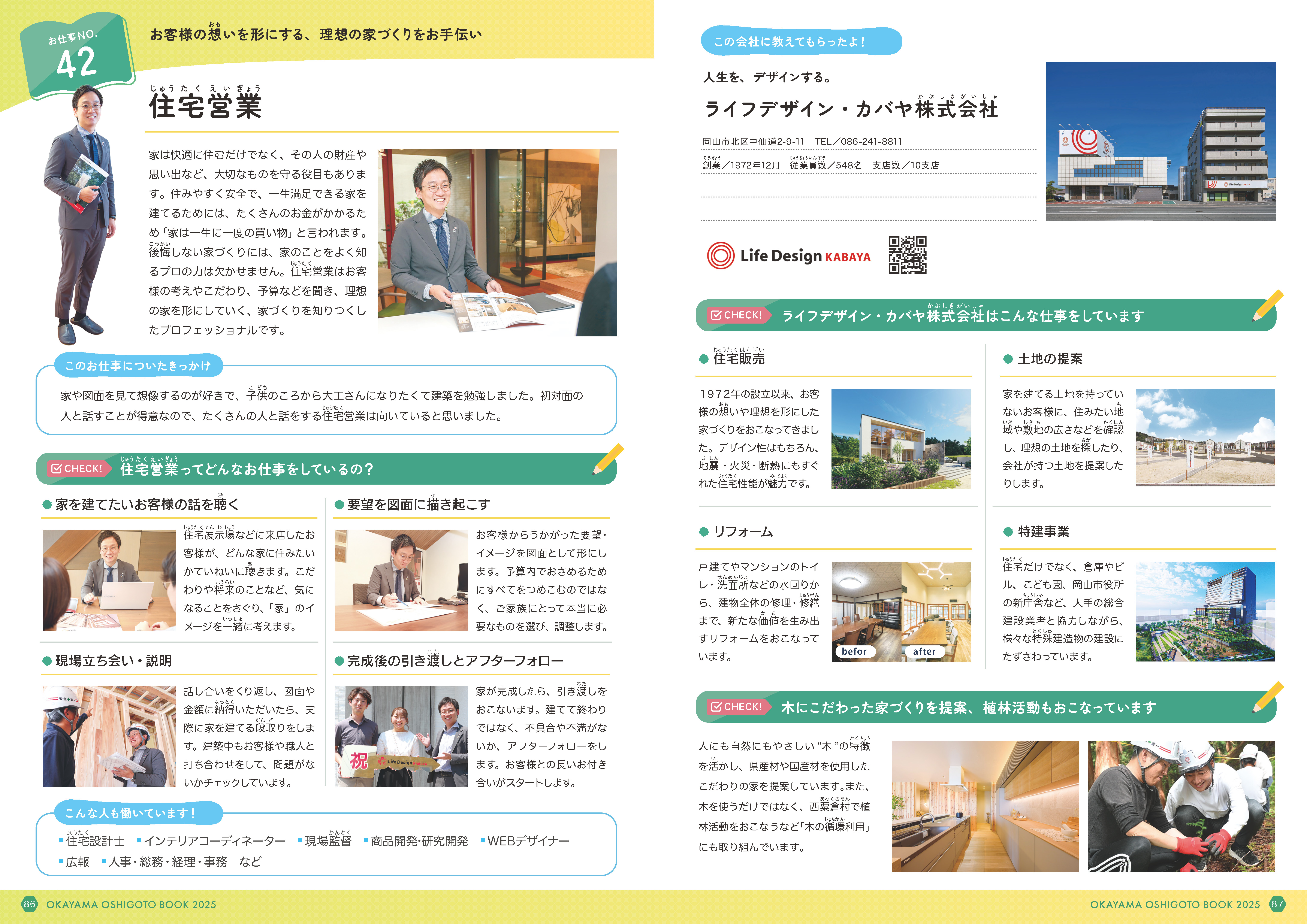 当社は本企画に賛同し、「岡山県のおしごと本」2025年度版にて住宅営業の仕事の魅力について紹介しています。