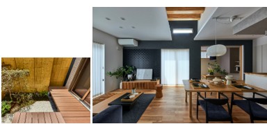 木を随所に用いたリビングからは坪庭が見え、室内の雰囲気と調和しながら、心を和ませる情景を描き出します。