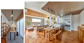 リビングダイニングは天井部分に化粧梁を設けるなど、随所に木の温もりと和の雰囲気を感じられ