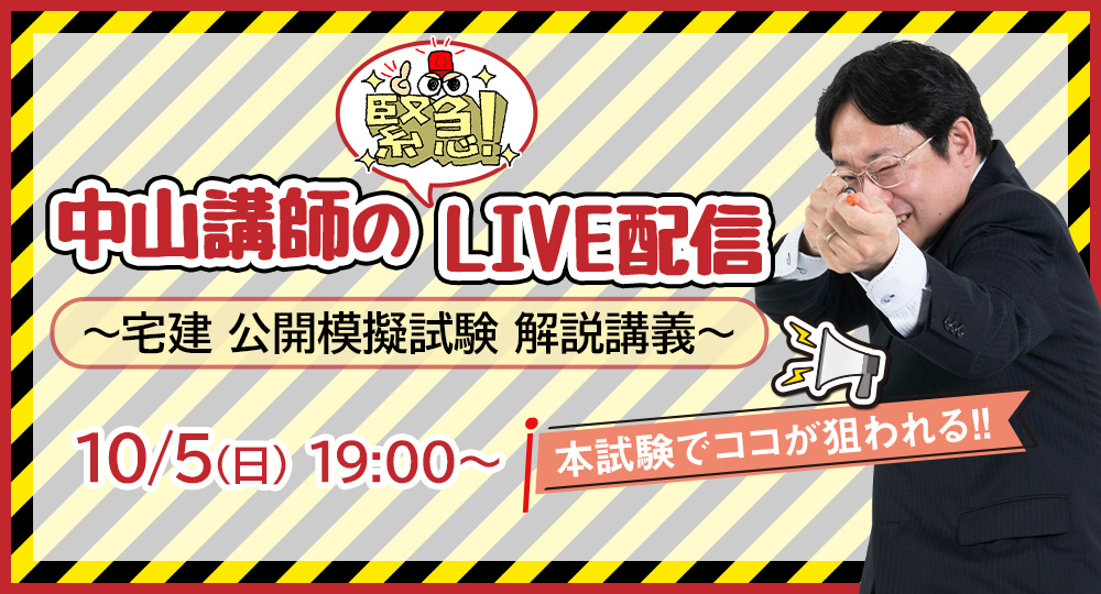 皆さまの公開模擬試験結果を集計・分析し、合格者と不合格者で大きく差がつく問題や、重要ポイントの「解説講義」を、中山講師がYouTube LIVE配信で徹底解説いたします!