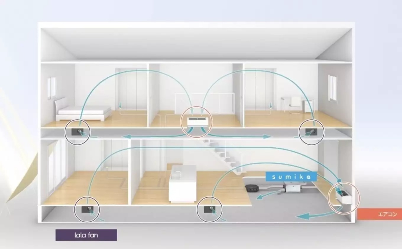 全館空調とは、家の中の空気を循環させ、家中の温度を一定に保つ冷暖システムのことです。