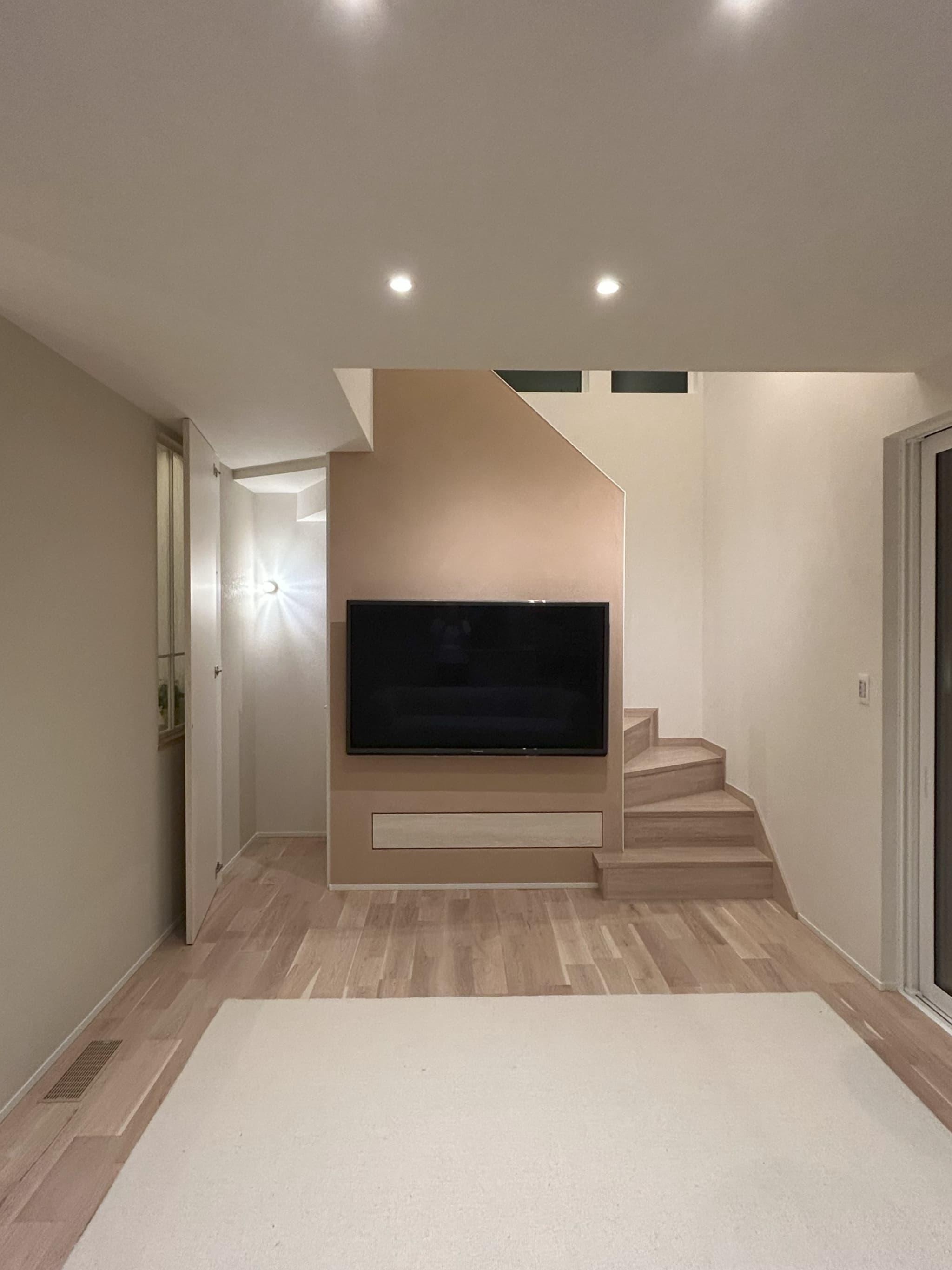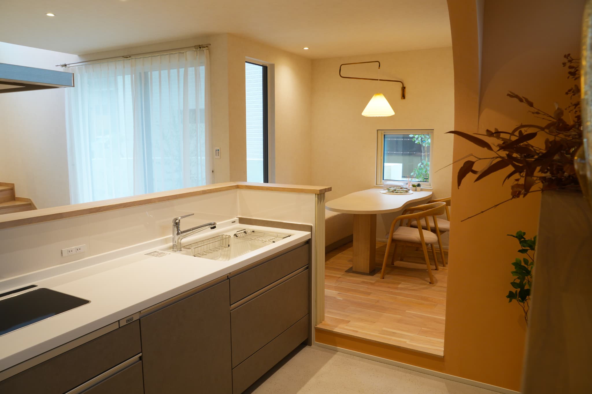 リビングで遊ぶお子様を見守れるようダウンキッチンに。ご家族と目線が合いやすいため、コミュニケーションが生まれ、心の距離もぐっと近付きます。